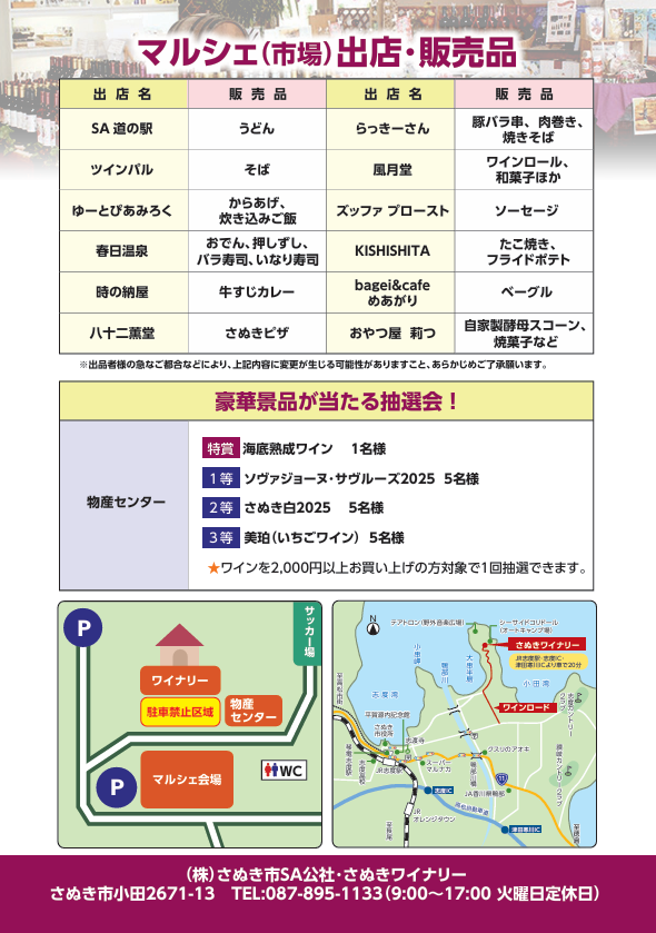 | 開催場所 | さぬきワイナリー、物産センター及び向かい側駐車場 |