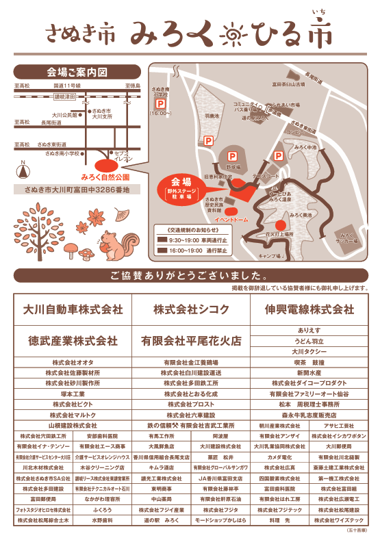 | 会場 | みろく自然公園 野外ステージ・駐車場 さぬき市大川町富田中3286番地 |
