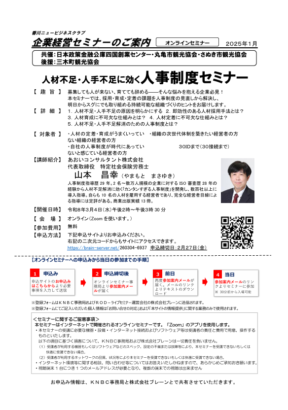 香川銀行と共催して、オンラインセミナーを開催いたします。詳細はチラシをご覧ください。