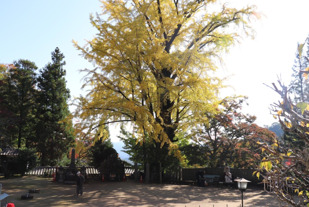境内大イチョウは黄色く色付き、見頃を迎えました。少しずつ葉が散っていたので、もう少しで黄色い絨毯ができそうです。