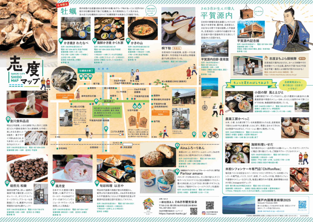 JR志度駅周辺観光MAP ホーム>観光パンフレット>JR志度駅周辺観光MAP さぬき市が生んだ奇才平賀源内にちなんだ源内通りには旧邸や記念館、商店等があり志度寺まで続く門前町として歴史を感じることができます。レンタサイクル等も有りますのでさぬき市志度へお越しの際は、ぜひ参考にして下さい!周辺情報も満載! 志度マップダウンロード