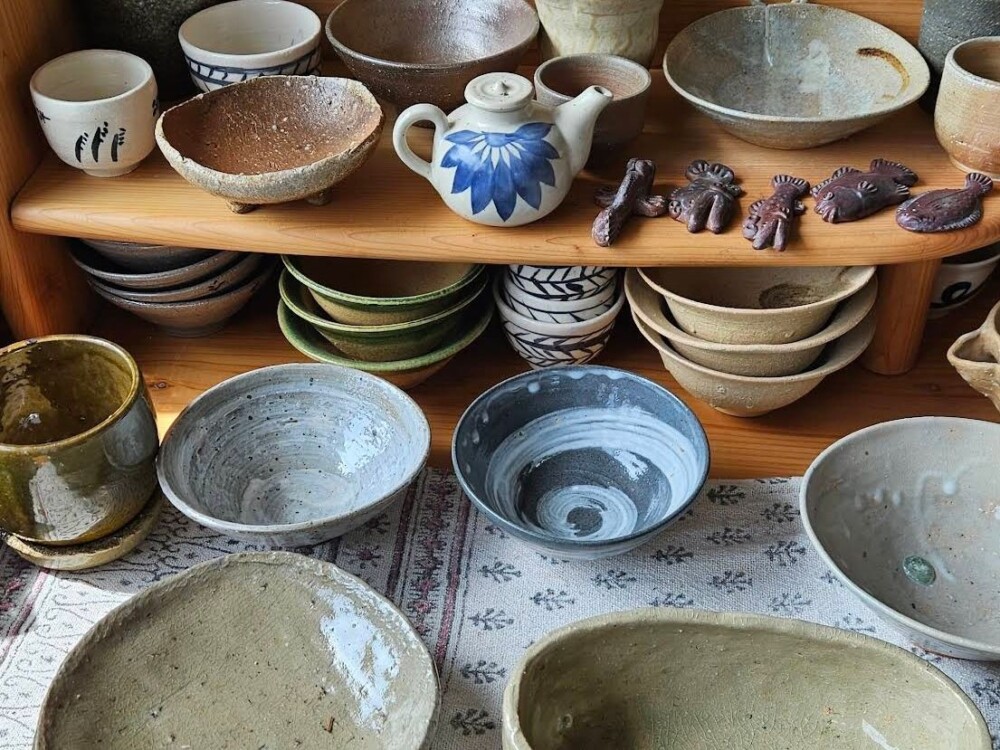 ギャラリーでは讃陶花の元窯元である故中川佐代子氏の陶芸作品を中心に漆器、茶道具、仏画などを併設するカフェで作品を見ながらお茶を楽しんでいただけます。